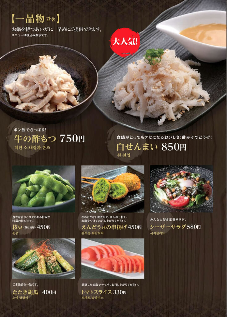 こだわりのもつ鍋&お勧めコース!